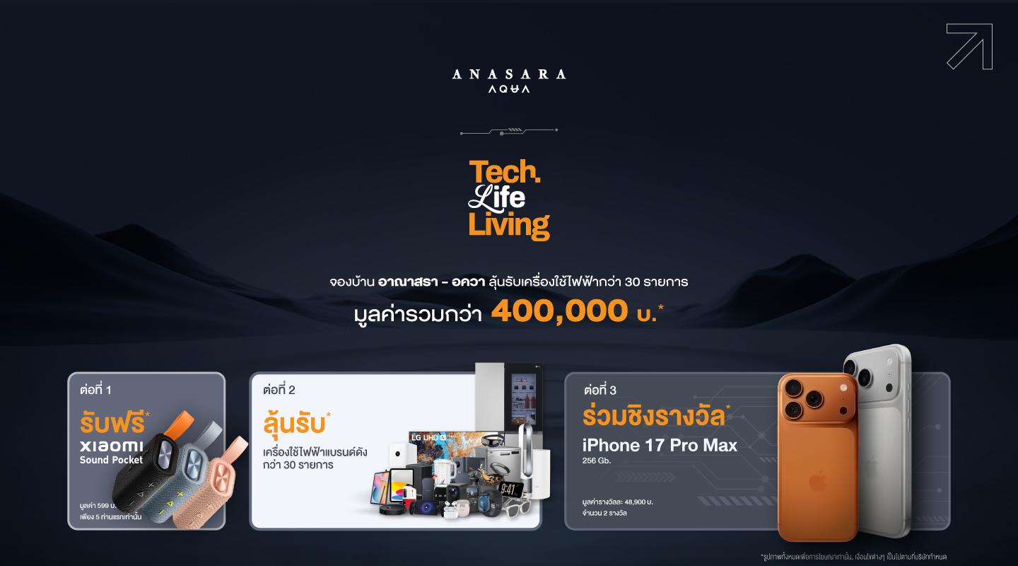 ANASARA – AQUA จองบ้านวันนี้ลุ้นรับเครื่องใช้ไฟฟ้า รวมกว่า 400,000 บ.